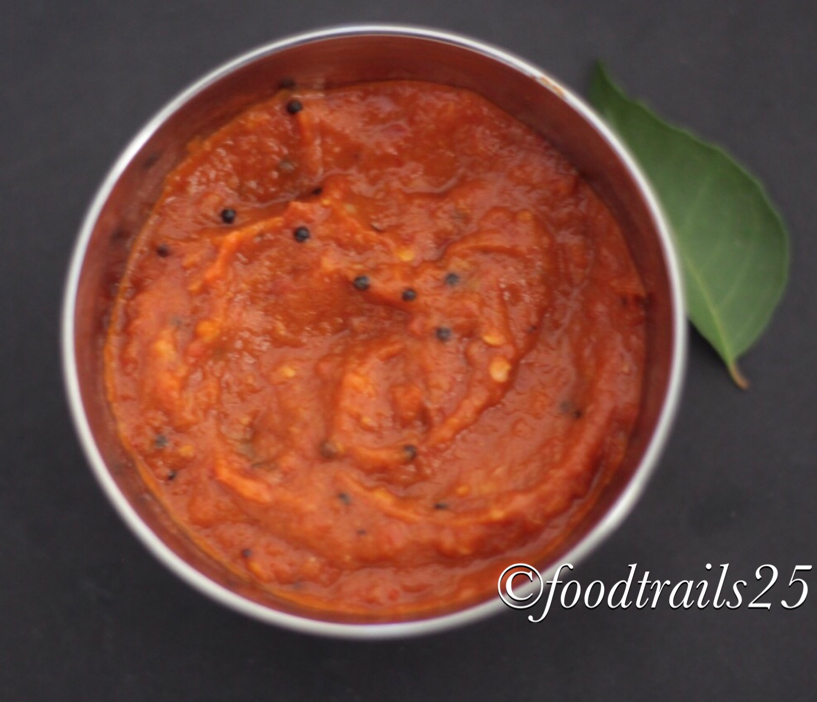 It is my variation of the famous Roasted Tomato and Garlic chutney that is quite famous in the state of Rajasthan in India and popularly known as Lehsun Ki Chutney. I usually keep a small jar of Lehsun ki Chutney(Rajasthani or Maharashtrian style) or Chinese Schezwan Chutney in my refrigerator as these go well with almost all Indian food items and can be added to fried rice preparations, noodles, dals and curries for enhancing the taste.
