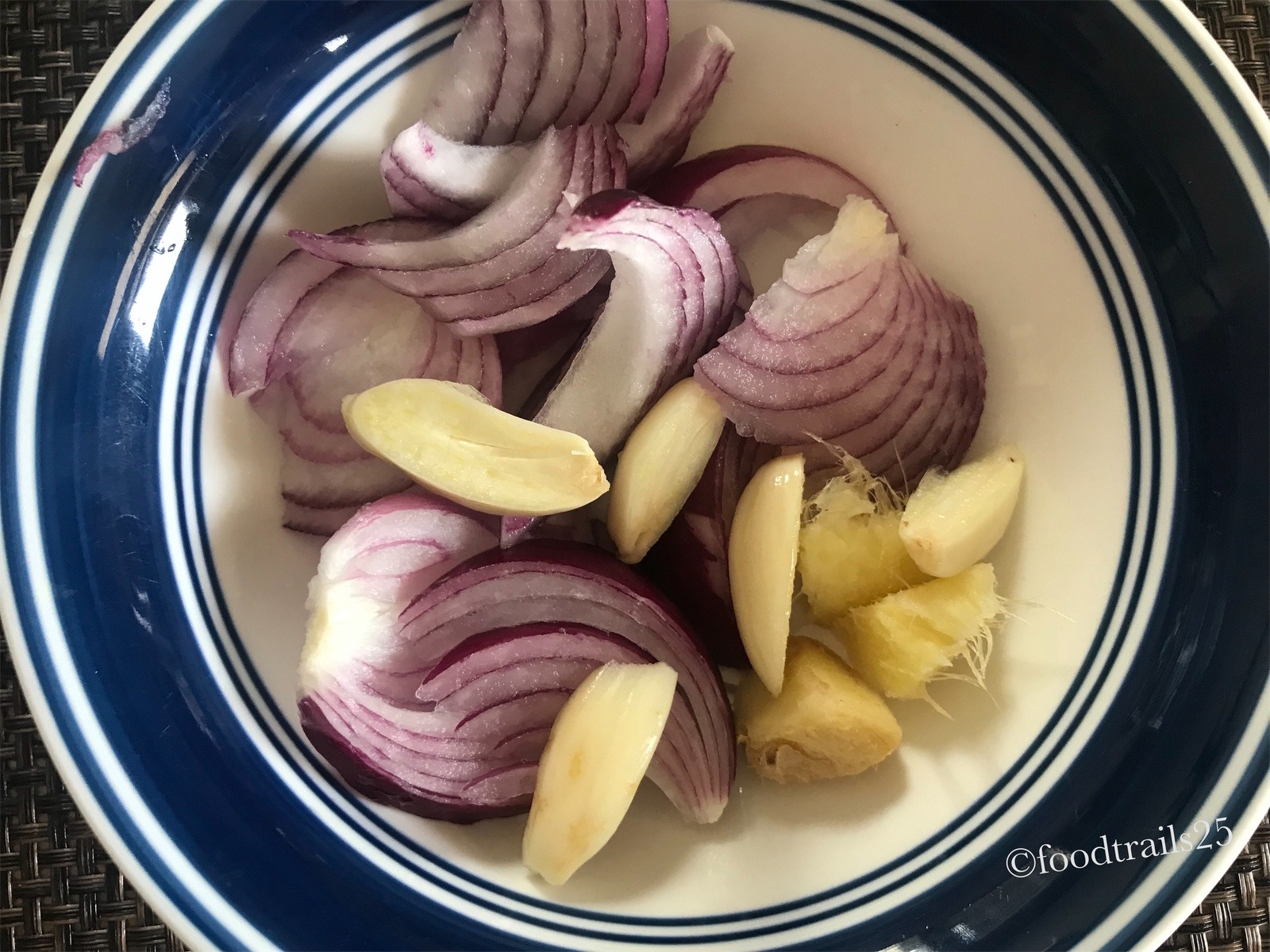 Make paste of onion, ginger , garlic and green chilli(optional).