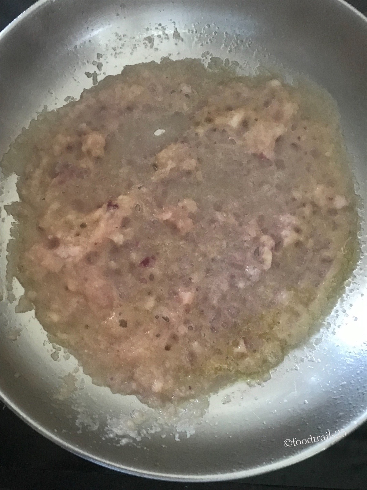 - In a pan, heat oil, add cumin seeds, saute onion paste till light brown.