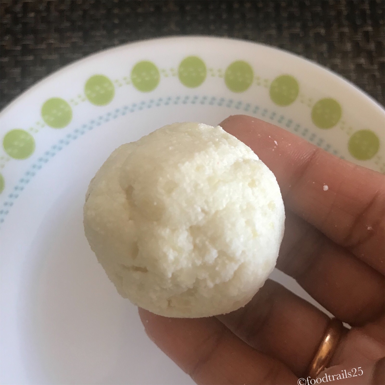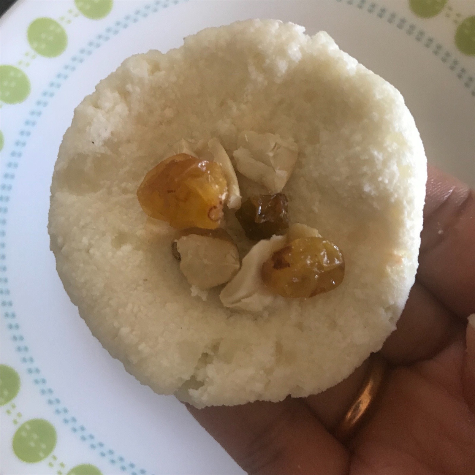 - Take small portion of mixture and flatten in your palm. Add finely chopped cashews and raisins and pack it tightly in a small tennis ball sized koftas.