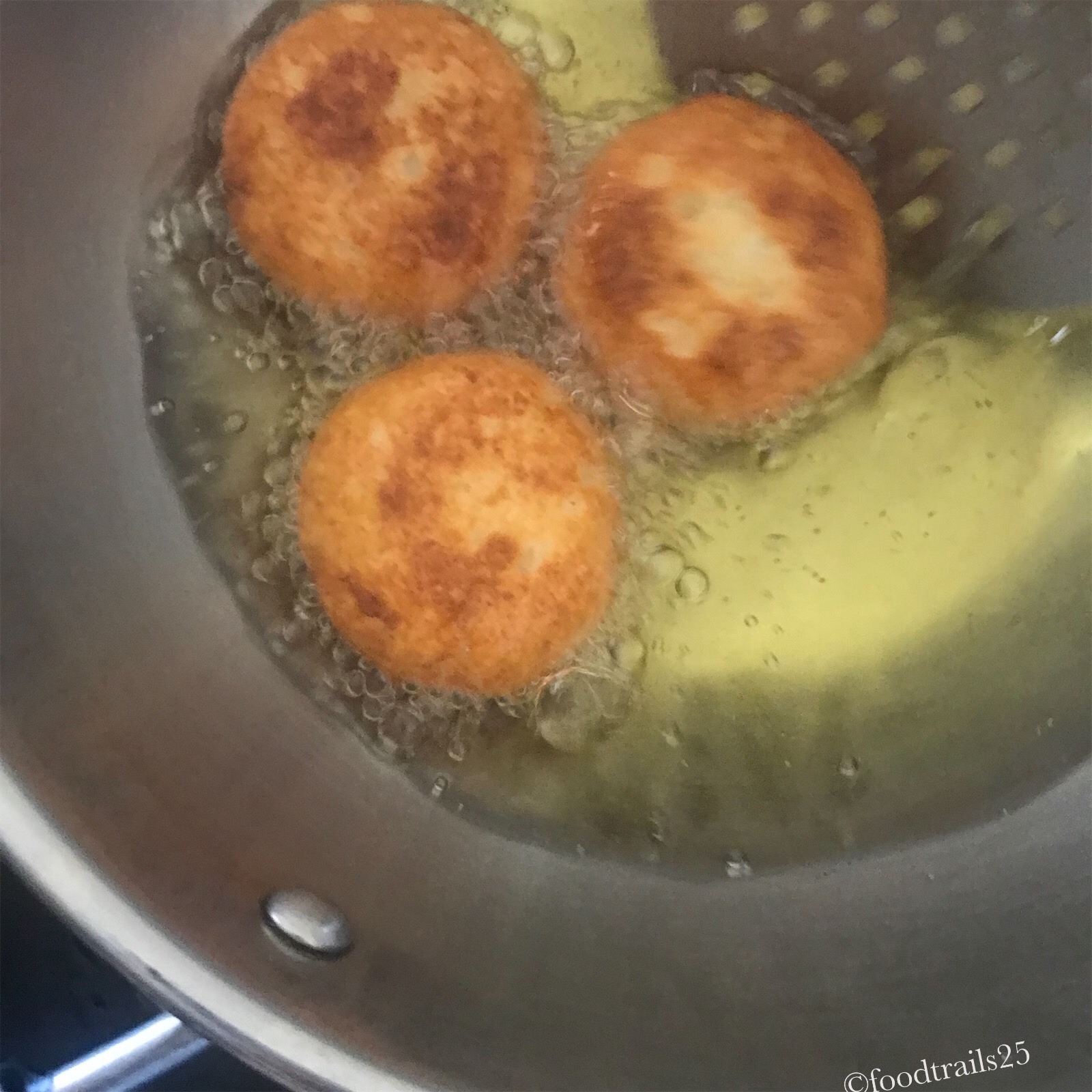 - Deep fry in medium hot oil till light brown. Avoid frying in very hot oil.