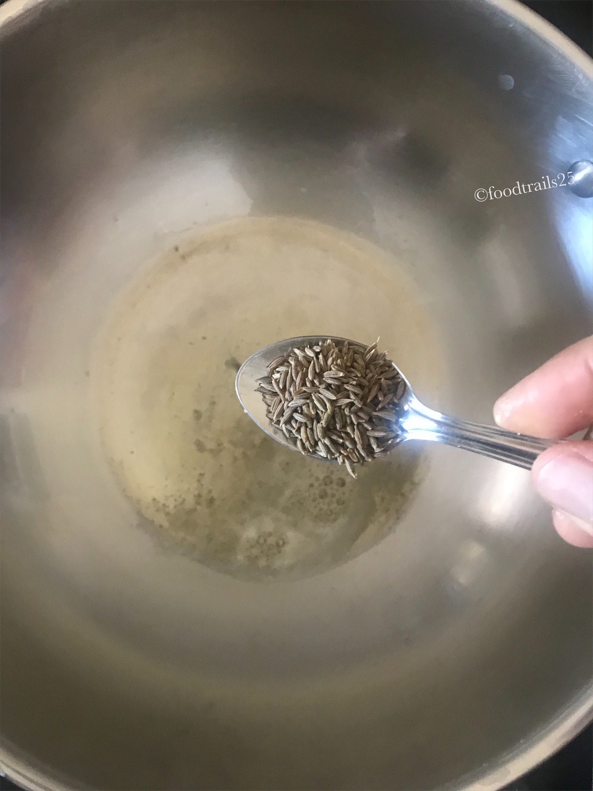 - In a pan or kadhai. add oil, once it is warm add whole spices, cumin seeds.