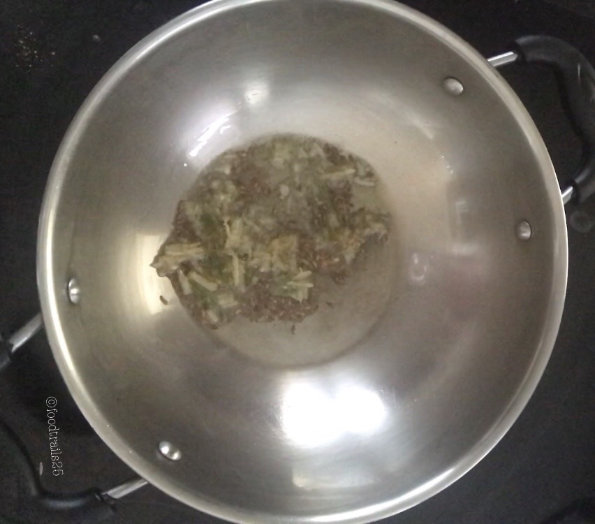 - In a pan heat oil, add cumin seeds. Once seeds crackle add ginger-green chili paste