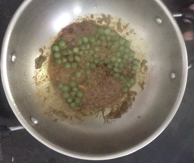 - Add peas and 1-2 tbsp of water. Let peas cook for 1-2 mins.