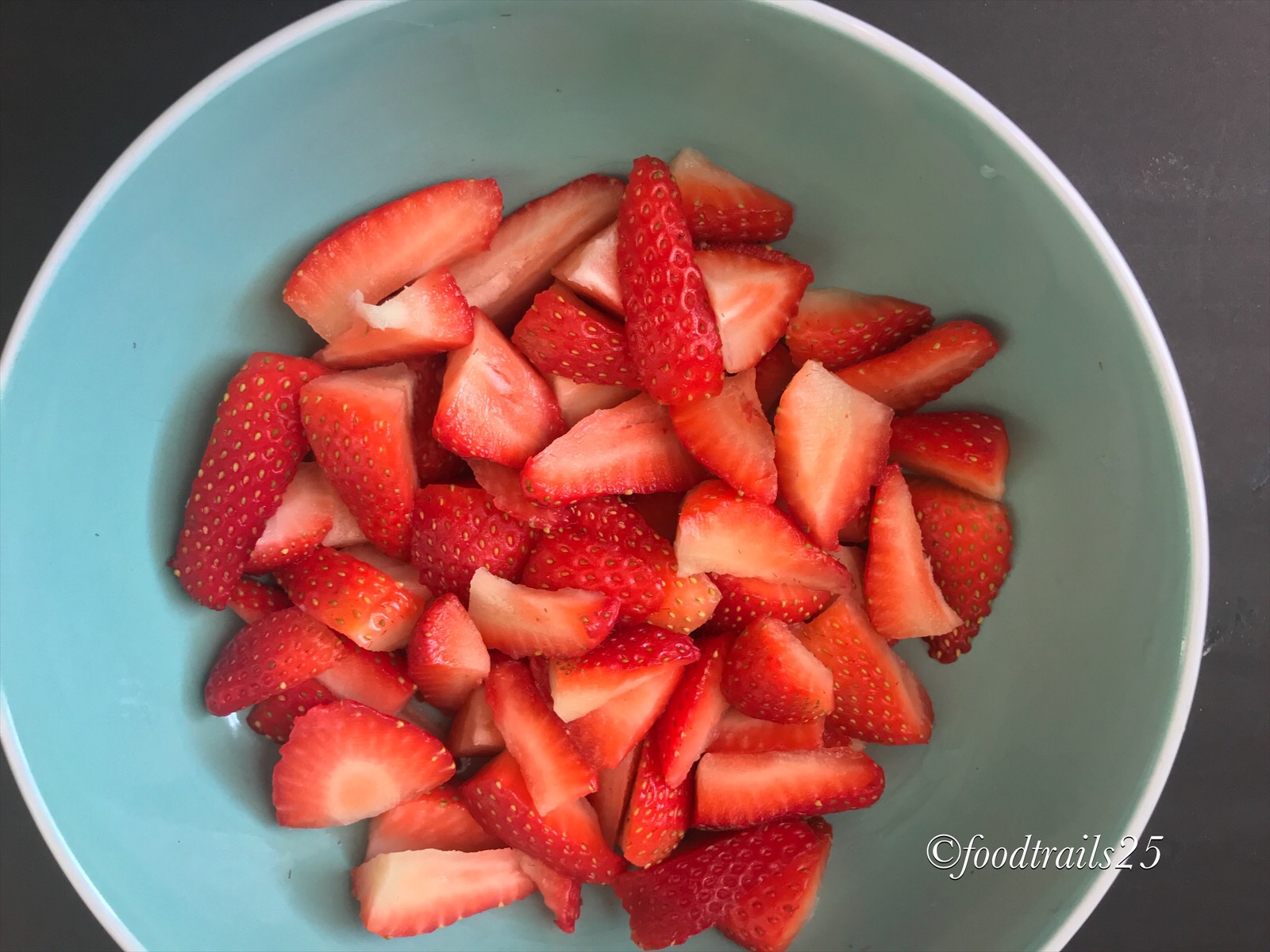 - Mix and cover the bowl with a cling film and refrigerate for at least 30 mins. Add sugar as per your taste and preference and also depending the tartness of strawberries.