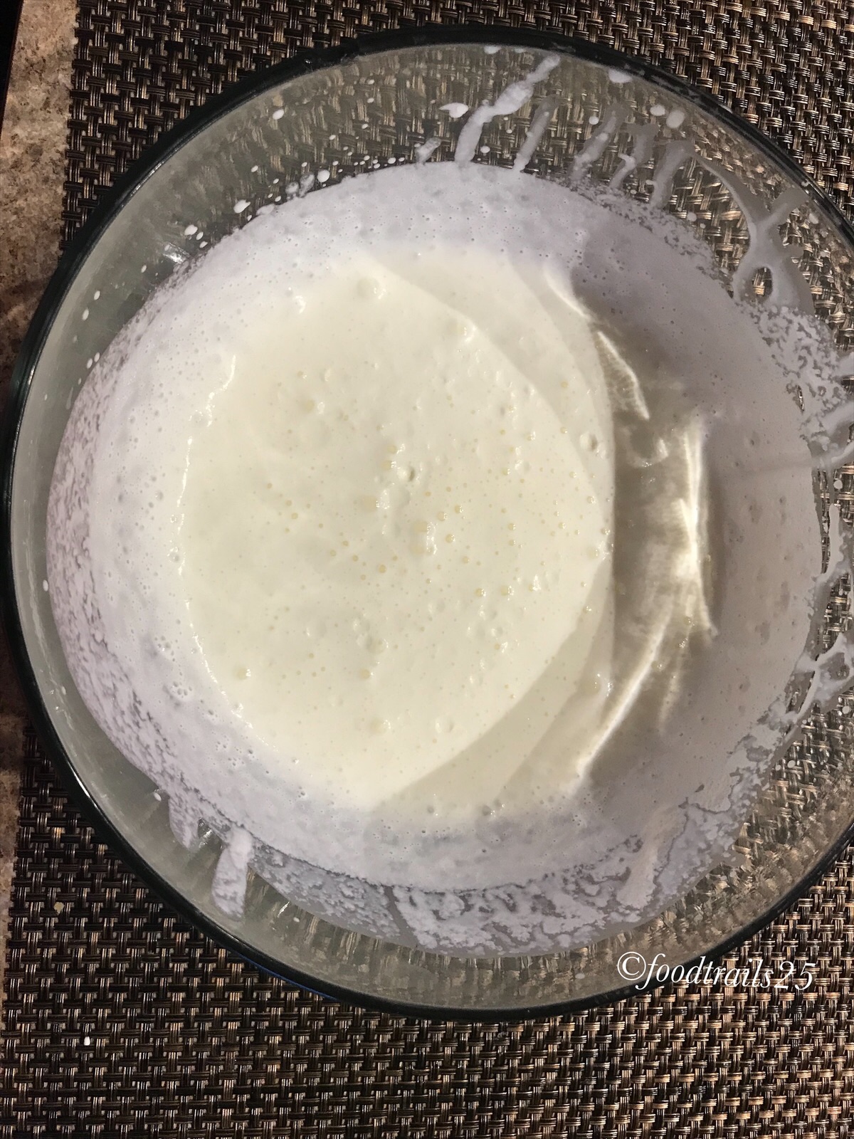 - Beat the cream for 2-3 minutes. We are not whipping the cream, only beating it to incorporated some air in it.1 Cup Heavy Whipping Cream/Amul Fresh Cream