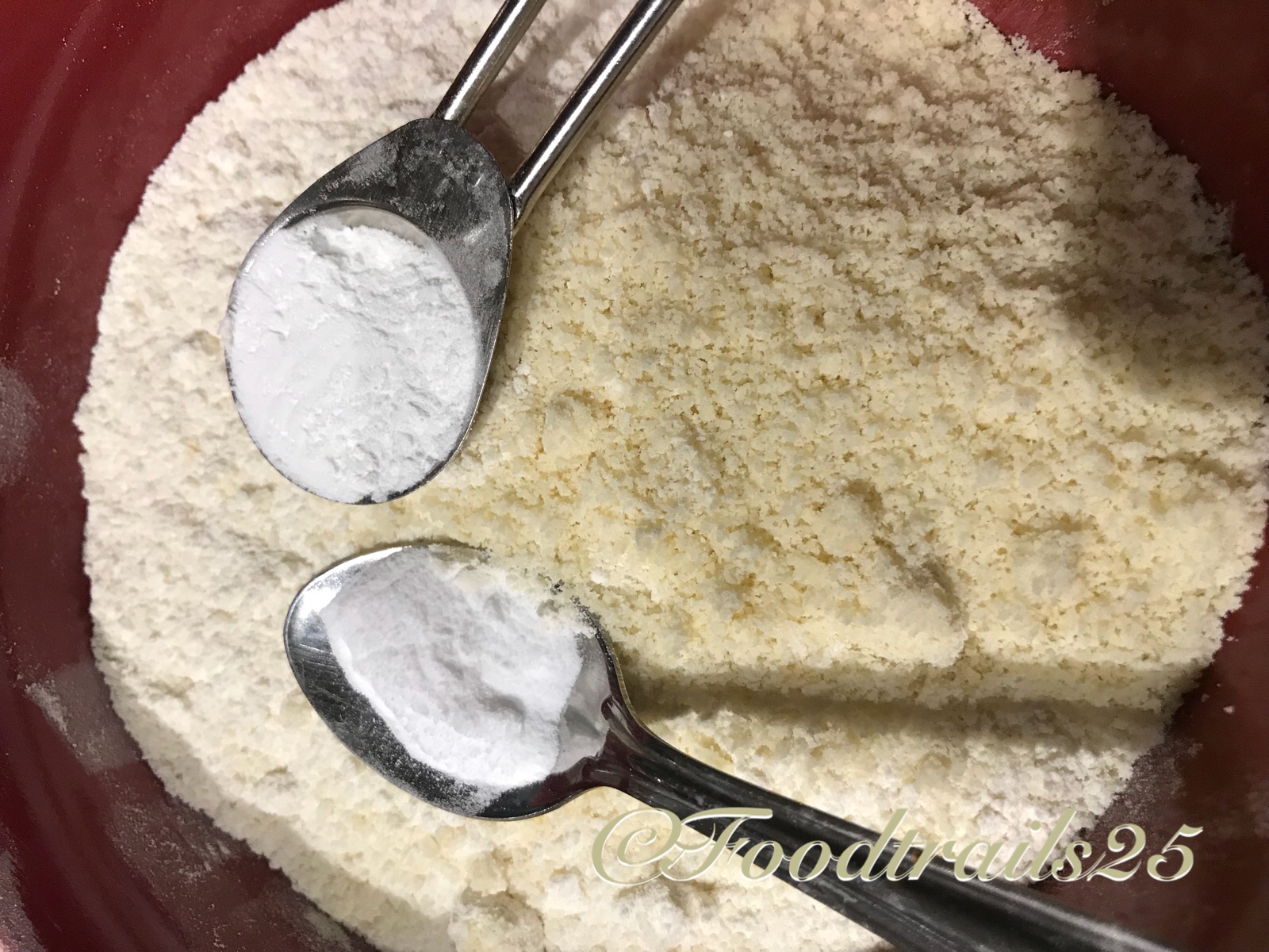 - Sieve together all-purpose flour, almond meal, baking powder, baking soda and salt if using unsalted butter or using oil. If you are using Thandai Masala, sift it with flour. I used oil for the recipe and added 1/4 tsp of salt with the flour.