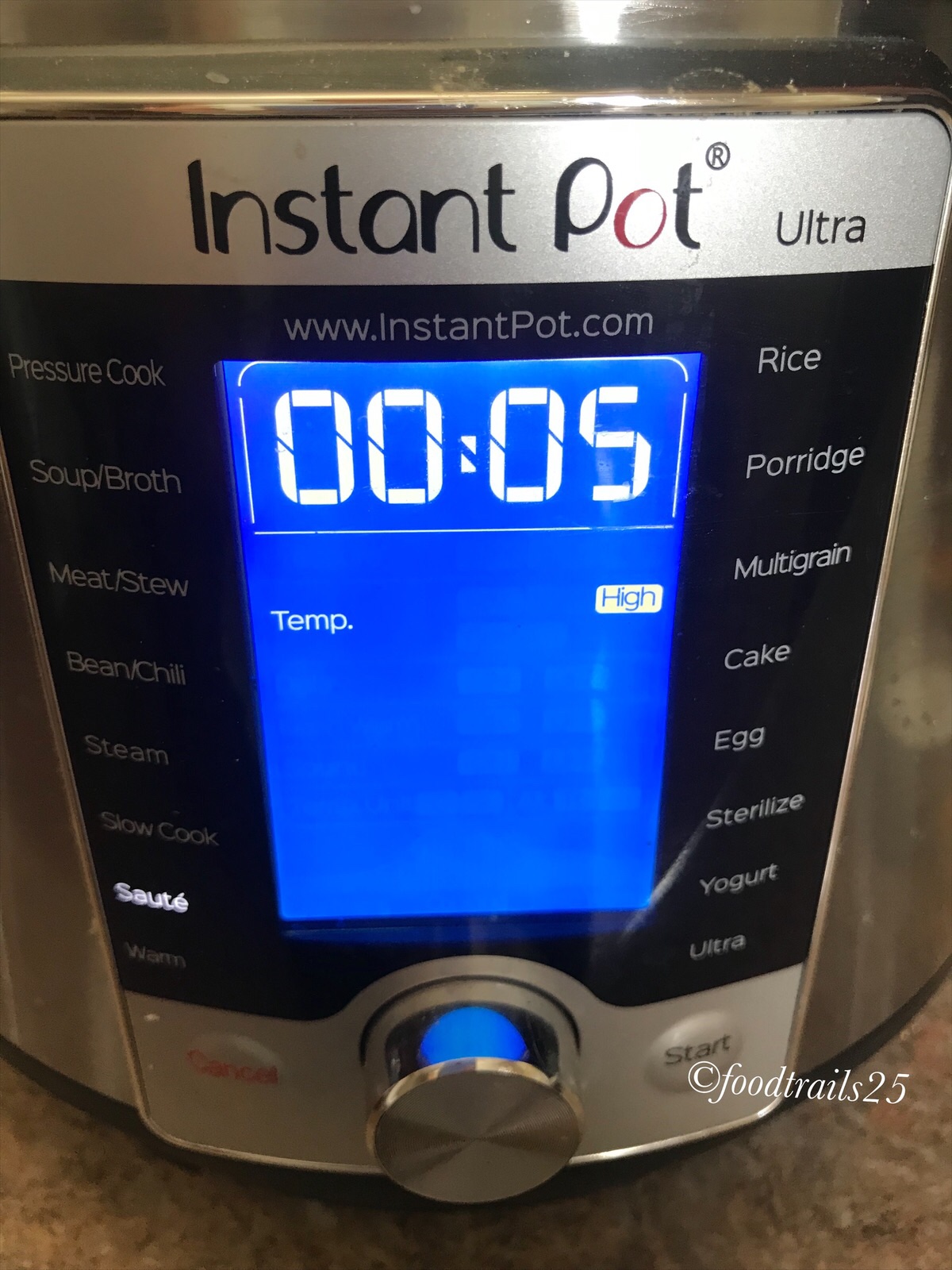 Switch on the Instant Pot, to sauté mode on high, set the timer for 10 minutes.