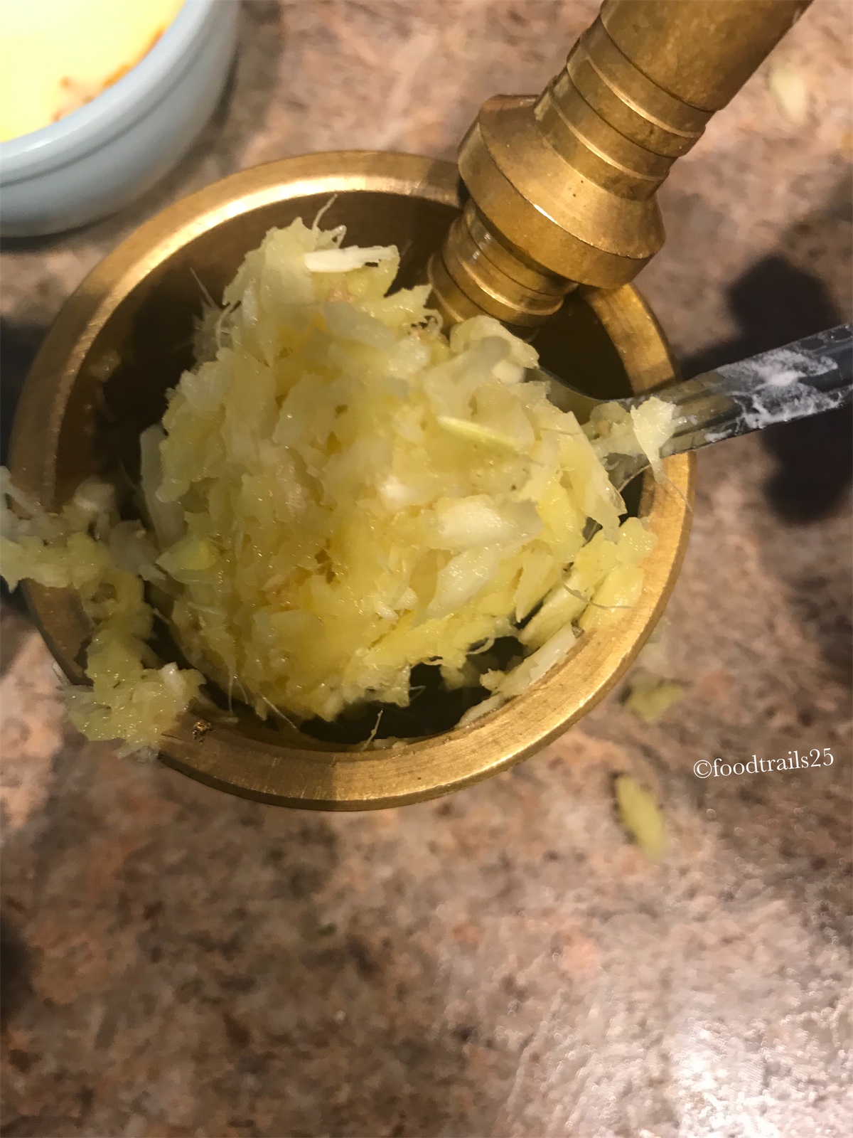 - Make paste of ginger garlic and chillies. I did not use green chilli this time. Use chillies as per your spice level.