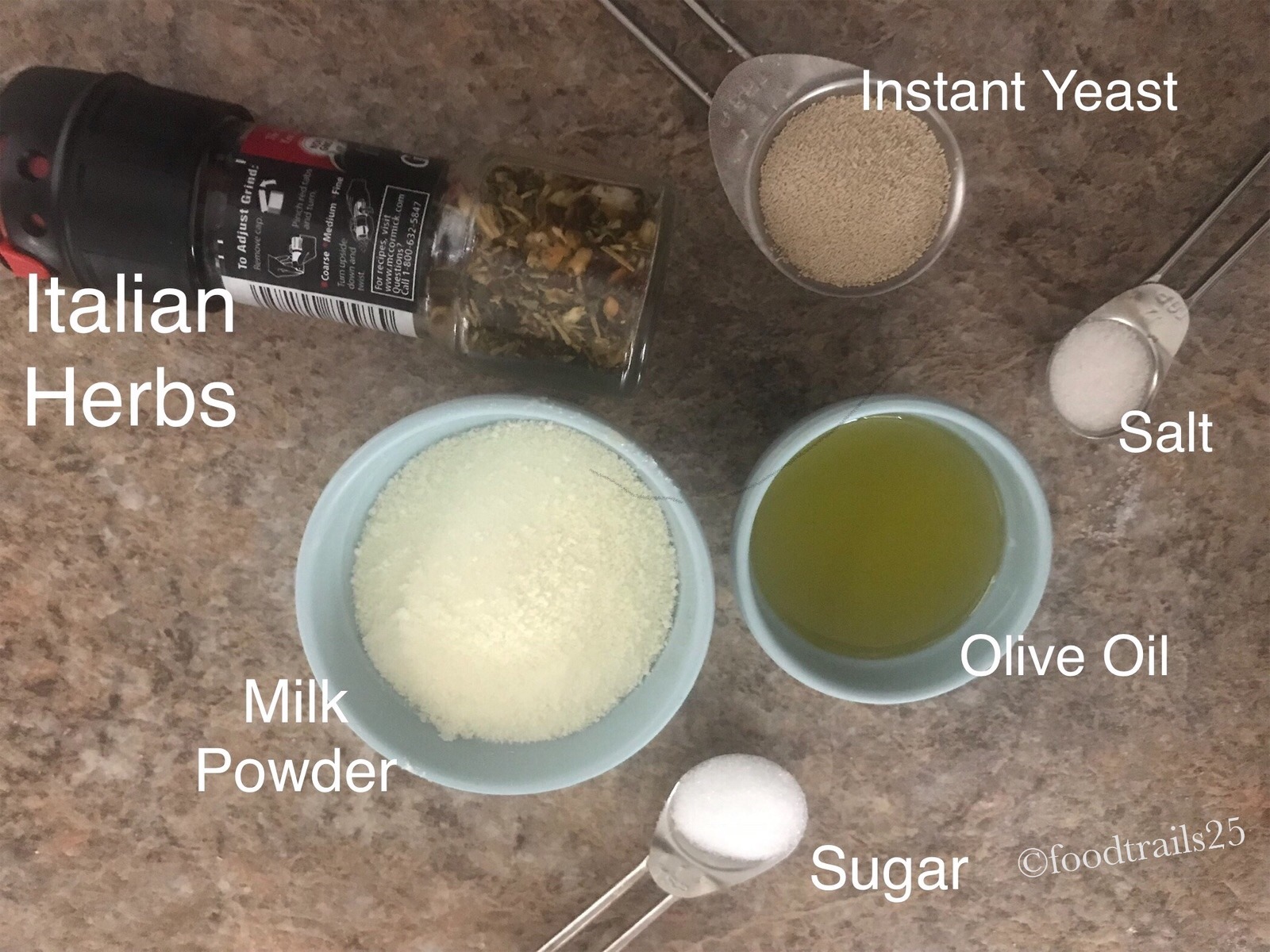 Other ingredients used are.. mix of Italian herbs for flavourful Pizza base(skip if you want a plain base), sugar, salt oil and water and yeast.