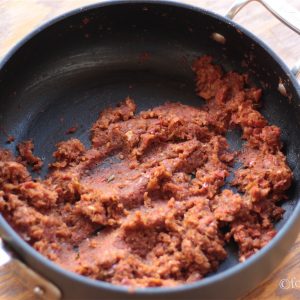 In a pan heat oil add cumin seeds, once seeds crackle add onion paste.