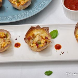 Wonton cups loaded with a easy Paneer(Indian Cottage Cheese) Makhani filling( that can be prepared in jiffy), with lots of cheese and onions and capsicum for the crunch. A fusion recipe of Indian Makani flavours served in Chinese wonton cups.