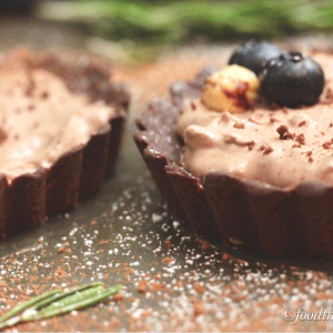 To assemble the tarts, fill with 2-3 tbsp. of mousse or as required, top or garnish with more crushed Ferrero Rocher or blueberries or nuts of your choice.