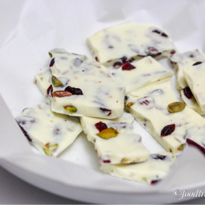 Creamy White Chocolate bark with tangy dried cranberries and crunchy pistachios, a perfect sweet treat for the festivities or gifting to your loved ones.